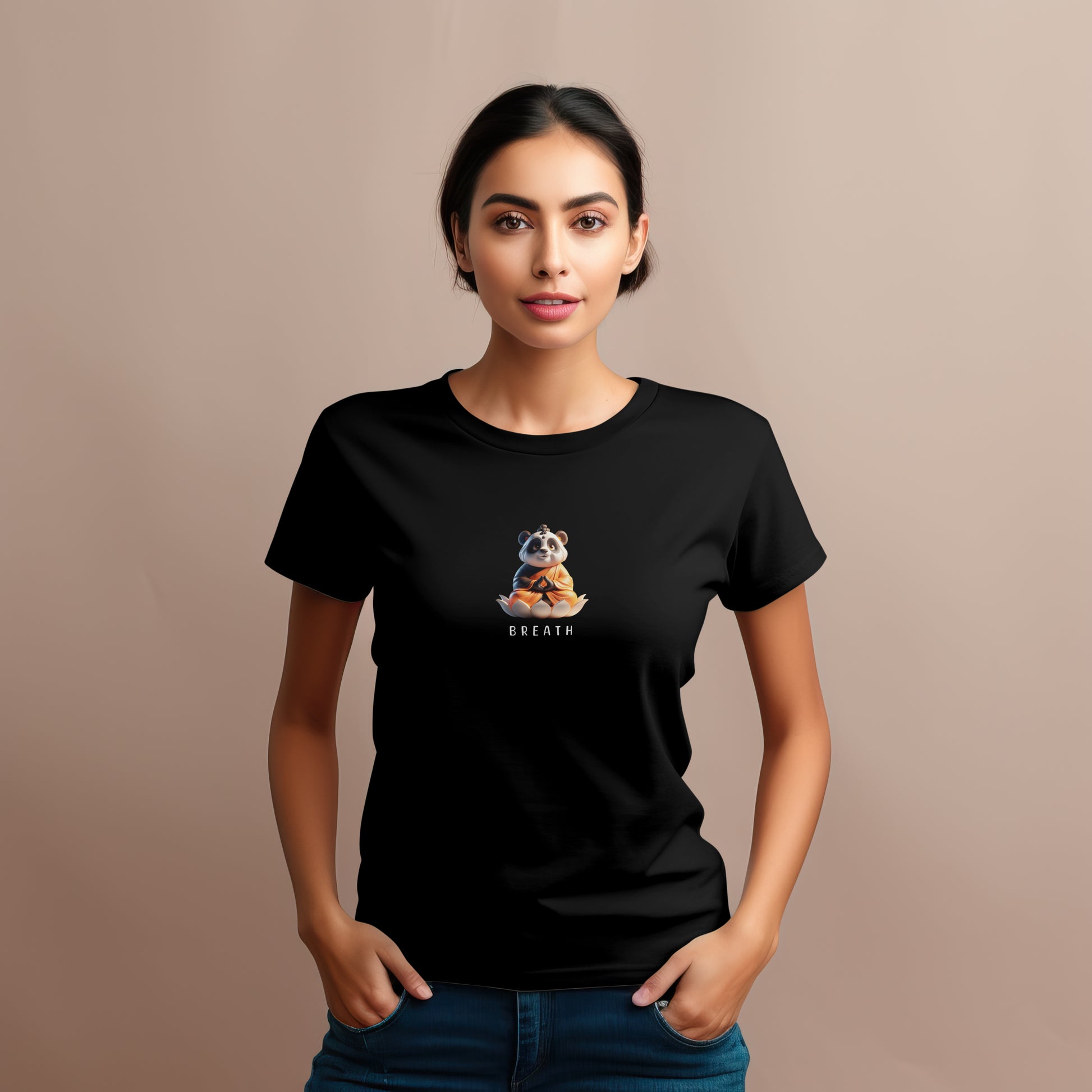 Unsere Yoga-Shirts verbinden die Essenz des Atmens mit einer Prise Leichtigkeit. Wie dieses Design mit dem süßen kleinen Panda, der dich daran erinnert: "Breathe."
